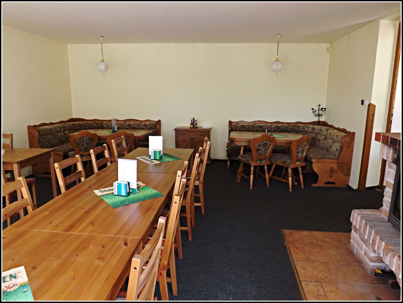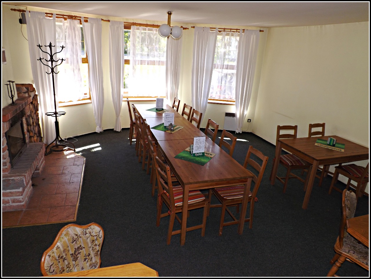 V salónku je pro příjemnou atmosféru možnost roztopit oheň v krbu. Také je možnost změnit rozmístění stolů dle Vašich požadavků.